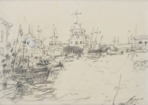 Jean FUSARO (né en 1925) Le Port Dessin à la mine de plomb. Signé en bas à droite. 15 x 21 cm Provenance : Collection du photographe Jean-François Bonhomme, Paris.