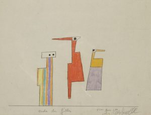 Guidette CARBONNELL (1910-2008) Composition École des filles Dessin au crayon et pastel. Signé et annoté. 20 x 27 cm