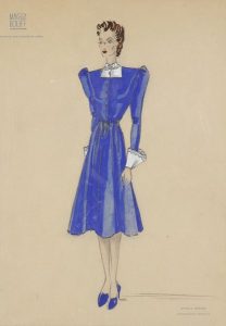 Maggy ROUFF (XXe siècle) Robe bleue 3 gouaches sur traits de crayon. Sur un papier de la maison Maggy Rouff. 32 x 25 cm chaque