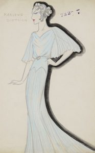Jenny CARRE (XXe siècle) Marlène Dietrich Gouache et aquarelle. Titrée en haut à gauche. 33 x 21 cm