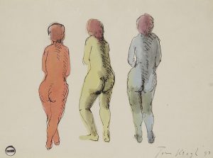 Tom KEOGH (1921-1980) Projet pour la première page de couverture du programme de Ballets des Champs-Élysées, 1947 Dessin à l’encre et aquarelle. Signé et daté en bas à droite. Porte le cachet de l’artiste. 22.5 x 30 cm