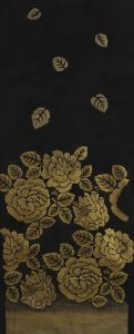 Raoul DUFY (1877-1953) Roses dorées sur fond noir Gouache sur papier. Porte le cachet de la signature en bas à gauche. 128 x 51 cm Un certificat n°T94 de madame Fanny Guillon-Lafaille en date du 27 juin 1994 sera remis à l’acquéreur....
