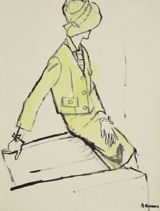 Bernard BLOSSAC (1917-2001) Modèle tailleur jaune (Magazine Actualité Couture 1955) Dessin à l’encre et gouache. Signé en bas à droite. 59 x 44 cm