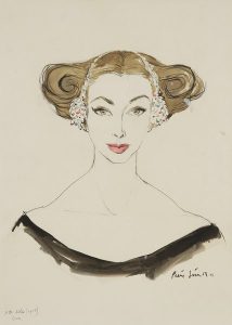 Pierre SIMON (1907-1999) Ligne ailée pour Dior, 1953 Dessin au crayon noir et aquarelle. Signé et daté en bas à droite. 50 x 37 cm Provenance : Ancienne archives de la maison Guillaume.