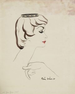 Pierre SIMON (1907-1999) Ligne Femme Époque, 1955 Aquarelle. Signée et datée en bas à droite. 44 x 35 cm Provenance : Ancienne archives de la maison Guillaume.