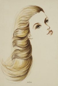 Pierre SIMON (1907-1999) Ligne mirage, vers 1970 Aquarelle. Signée en bas au milieu. 47 x 31.5 cm Provenance : Ancienne archives de la maison Guillaume.