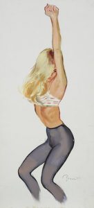 Raymond BRENOT (1913-1998) Femme le poing levé Gouache sur carton. Signée en bas à droite. 53.5 x 25 cm