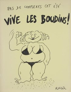 Jean-Marc REISER (1941-1983) Vive les boudins Dessin au feutre. Signé en bas à droite. (Petits plis et déchirures sur les bords). 75 x 59 cm
