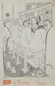 Charles TUDOR [américain] (1903-1970) Au comptoir, vers 1931 Dessin à l’encre. Signé en bas à gauche. On joint une version imprimée. 38.5 x 24.5 cm