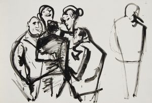 Charles TUDOR [américain] (1903-1970) Au salon Dessin à l’encre. Signé en bas à gauche. Annoté en anglais en bas à droite. On joint une étude à l’encre pour la partie gauche du dessin 20 x 30 cm. (Manques dans les angles). 35 x 45 cm