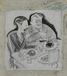 Charles TUDOR [américain] (1903-1970) Les Pancakes, vers 1931 Dessin à la mine de plomb et encre sur calque. Signé en bas à gauche. On joint une version imprimée. 28.5 x 25 cm