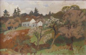 Huile sur panneau, 23 x 35. Signée «Aug. Donnay» en bas à droite. Dans un cadre doré. Peintre et dessinateur symboliste de figures, paysages, etc., né à Liège en 1861 et mort à Jette en 1921 . Il était également graveur, illustrateur, affichiste. Il s'installa à Méry-sur-Ourthe en 1905 (Arto).