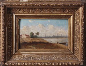 Huile sur panneau de bois 12 x 19,8. Signée en bas à gauche. Dans un cadre orné doré (petits accidents au seul cadre). Le dictionnaire de Bénézit ne reprend que deux sculpteurs portant ce patronyme.