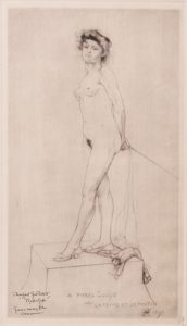 Pointe sèche, 30,7 x 17,3. Epreuve sur Japon (marges : 47 x 31,5). Dans la plaque : «A Pierre Louÿs d'après La femme et le pantin». Dédicacée, signée et justifiée «à monsieur Gust. Pellet. Rassenfosse. Gravure non mise dans le commerce» à l'encre noire en bas à gauche. 3ème état (sur 3 : texte, monogramme et date ajoutés; Rouir, 383). Les bords des marges lég. brunies, sinon en belle condition. Sous verre, baguette dorée.