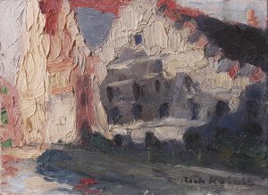 Huile sur carton fort, 16 x 21 ,8. Signée «Rich. Heintz» en bas à droite. Authentifiée au dos par Madeleine Orban-Heintz : «Gand. Février 1927. Rich. Heintz». Cachet du magasin Veuve Dessartu rue Lulay à Liège au dos.