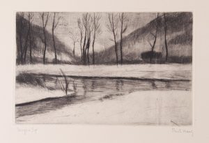 Eau-forte, 15,8 x 24,5. Epreuve sur Hollande 33 x 50. En très belle condition. Titrée et signée au crayon en dessous (de la main de Madeleine Orban-Heintz).