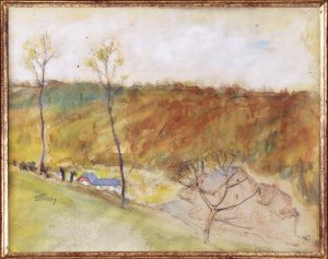 Aquarelle, 24 x 30. Signée «Jean Donnay» à gauche. En très belle condition. Sous verre, dans un cadre de bois ciré.