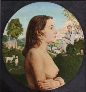 Huile sur toile (ovale), 80 x 74. Dans un cadre bleu nuit. Peintre et dessinateur réaliste de portraits, figures, paysages, compositions, né à Charleroi en 1916 et y décédé en 1993. Elève de Buisseret à l'Académie de Mons (Arto).