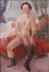 Huile sur carton, 25,5 x 1 8. Signée «R. Liard» en bas à droite. Dans un cadre doré et brun.