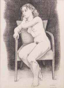 Robert Nibes. Femme nue assise dans un fauteuil. 1955.