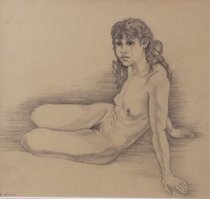 Dessin, 23,5 x 25. Signé «R. Nibes» en bas à gauche. Sous verre et passe-partout, baguette dorée.