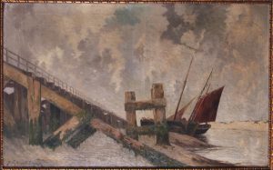 Huile sur toile, 65 x 107. Signée «A. Van Damme de la Marck» en bas à gauche. Dans un cadre orné doré. Peintre, aquarelliste et lithographe néo-expressionniste née à Ypres en 1933. Autodidacte (Arto).