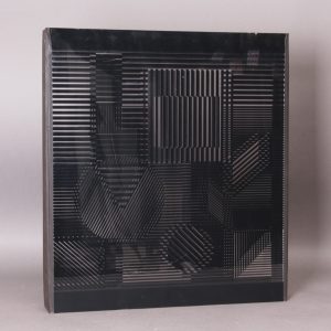 Plexiglas double optique, multiple, 56 x 50. Signé «Vasarely» à l'intérieur. Quelques fines griffes sur une face, sinon en très belle condition.