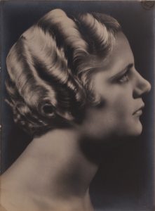 Willy Kessels. Portrait de jeune femme de profil à la chevelure blonde ondulée.
