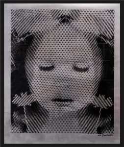 Sérigraphie sur papier argenté 62 x 51. Justifiée et signée «E / A. Grooteclaes» à l'encre noire en bas à droite. En belle condition. Reproduite dans le catalogue de l'exposition Hubert Grooteclaes (Liège, Curtius, 2014-2015, p. 53). Sujet : le visage d'une enfant (fille de l'artiste). Sous verre, cadre argenté.