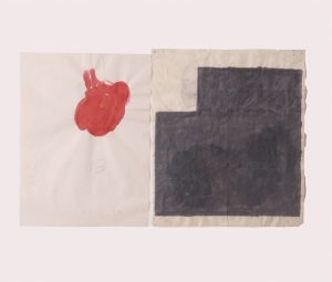 Encres sur papiers, 33 x 25. Deux pièces se répondant, la première signée et datée «MB. 27 3 96». Sous verre, dans un cadre de bois naturel (dimensions du cadre : 70 x 69).
