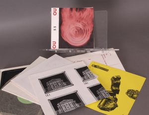 Revue avec disque vinyle 33 tours. Revue poétique. Contient également 6 posters. Le dos du coffret (28 x 26) est orné d'une sculpture thermoforme de Hansjorg Gisinger intitulée Portrait of Ernest (24 x 24). Edité à 500 exemplaires numéroté à la main (n° 500). Pièce en bonne condition. Cette revue, qui compta 25 numéros, prit la suite de la revue Cinquième Saison (1958-1963). On joint le n° 33 de la revue, avec le disque, en très belle condition. Un des 969 exemplaires numérotés.