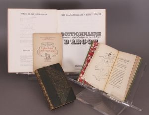 [Argot]. Larchey (Lorédan). Dictionnaire historique, étymologique et anecdotique de l’argot parisien. Sixième édition des excentricités du langage [...] Illustrations de J. Férat et Ryckebusch.