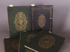 5 vol. in-folio (38 x 28), en reliures romantiques en vert, décorées de plaques dorées, tranches dorées. Petites usures aux reliures, intérieur frais. Beau témoignage du romantisme anglais : recueils annuels de textes illustrés de planches sous serpente de grande qualité.