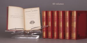 Paris, E. Girard et A. Boitte, 1894. 40 vol. in-8 (22,5 x 14), en cartonnage rouge d'éditeur, décor doré au dos, et noir aux plats. Le sous-titre porte : «Romans - contes - nouvelles - poésies - voyages - histoire -sciences - art». La lecture «actuelle» couvre les 26 premiers vol., la lecture rétrospective les 14 suivants. La table, constituant le dernier vol., manque. Petits accidents à quelques coiffes, sinon ensemble en bonne condition.
