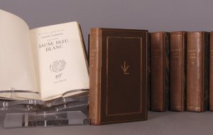 Paris, NRF, Gallimard, 1 950-1 954. 1 0 vol. in-8 (23,5 x 15), plein cuir brun, dos lisse, titre doré, filets d'encadrement aux plats, avec «VL» doré au centre du premier, non rogné, les plats et dos conservés, étui bordé. Exemplaire numéroté sur vergé des Papeteries Navarre de Voiron de l'édition originale. Sauf les dos des reliures insolés, bel exemplaire.