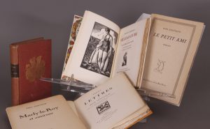 Paris, Société du Mercure de France, 1 903 (deuxième édition, tirée à 500 exemplaires). Petit in-8 (1 7,5 x 11 ,5), en cartonnage à la bradel vieux rose, pièce de titre maroquin brun, armes dorées au premier plat. Joint : LEAUTAUD (Paul). Le Petit ami. Paris, Les Editions de la Bête Noire, s. d. In-8 broché, illustré d'une reproduction du portait de Léautaud par Marie Laurencin. Tirage à petit nombre. Bel exemplaire. Joint : LEAUTAUD (Paul). Marly-le-Roy et environs. Paris, Editions du Bélier, 1945. Plaquette in-8 brochée. Edition originale. Joint : FAGUS. Lettres à Paul Léautaud, avec un avant-propos et des notes du destinataire. Paris, La Connaissance, 1928. In-8, en cartonnage de toile avec réimpression du titre au dos et en premier plat (travail soigné), non rogné. Un des 50 exemplaires numérotés sur Rives de l'édition originale (n° 25; premier papier avant 900 Alfa). Joint : BOISSARD (Maurice). Villégiature, suivi de Un livre sur Paris. Avec cinq bois gravés par Constant Le Breton. Paris, Editions de la Belle Page, 1925. In-8, en cartonnage de toile avec réimpression du premier plat de la couverture (travail soigné), premier plat de la couverture conservé, non rogné. Exemplaire numéroté sur vélin d'Arches blanc de l'édition originale.