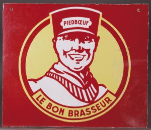 Plaque émaillée rouge et jaune, 40 x 47. La célèbre brasserie de Jupille (Liège) trouve son origine en 1812 et fait maintenant partie du groupe InBev.