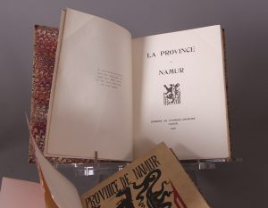 Namur, Editions Ad. Wesmael-Charlier, 1930. 2 vol. in-8 (26 x 19), plein chagrin aubergine, dos à 5 nerfs, titre doré, tête rognée, plats et dos des couvertures conservés. Illustré.