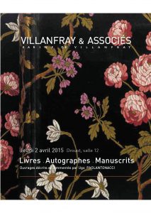 doré; petits manques de matière en coiffe et en pied, et quelques épiderrmures, dos frotté.. 89 ff. chiffrés dont le titre, le dernier non numéroté; 10 ff., 2 ff.; 2 portraits en pied gravés à pleine page (le roi; l’auteur aux ff. 17 et 18) et 64 figures d’escrimeurs à mi-page; brunissures et restauration marginale de papier aux feuillets 2 et 3. Le portrait du roi et celui de l’auteur sont en double; à leur place habituelle en cours d’ouvrage et reliés une deuxième fois à la fin. Très rare édition originale du premier traité d’escrime français, dédié au roi Charles Ix par l’auteur, Henry de Sainct Didier, gentilhomme provençal. On ne trouve pas la signature de l’auteur aprçs l’avertissement « Amy lecteur, qui d’entre vous acceptera ce livre & n’y trouvera ni le nom & paraffe de l’auteur écrit de sa main, tels livres ne seront vendus par la volonté d’’iceluy. Acette cause, il vous prie les lui faire apporter en sa maison & il vous rendra l’argent qu’ils vous auront couté... ». Apparemment un exemplaire, qui n’est pas une contrefaçon mais peut suggérer un tirage détourné par les ateliers de J. Mettayer et M. Challenge; indélicatesse qui privait de Sainct Didier, de sa part au contrat, tel que conclu avec l’imprimeur commanditaire, Jean Dalier. Un fac-similé publié en 1907 copié sur l’exemplaire, autorisé et paraphé par l’auteur de la Bibliothèque Nationale présente suffisamment de différence avec celui-ci pour suggérer une impression « pirate», reconnaissable à d’infimes différences dans la composition typographique. Absente du fac-similé, une inscription grecque « Telos » termine le feuillet 11; au verso de ce même feuillet un verset porte la devise « Amour et mort » qui n’apparaît pas dans la version autorisée, &c..