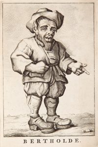 Croce, Giulio, Cesare. Histoire de Bertholde, contenant ses avantures, sentences, bons-mots, reparties ingénieuses, ses tours d'esprit, l'histoire de sa fortune, & son testament. La Haye, Pierre Gosse, 1750. 1 vol. in-8, cartonnage à la bradel...