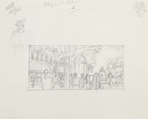 l'illustrAtion de ^ mAupAssAnt, dans l'édition en 15 volumes des Œuvres complètes illustrées de Guy de Maupassant (Librairie de France, t. XI, 1934). Presque tous portent une note identifiant le sujet, et parfois son emplacement dans le volume : « Folies Bergères », « Salon Forestier », « Duroy et Clotilde », « Le jardin de Cannes », « Visite à Rouen », « L'enlèvement », « Duroy sur le boulevard », « L'escalier », « Le cabinet particulier », « Le déjeuner à la brasserie », « Le duel », « Dans le train de Rouen », etc. Le dessin représentant Bel-Ami dans sa chambre, en train de rédiger un article, est en double état : mine de plomb, et cliché aquarellé.
