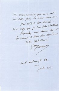 lui mercredi avec M. Cornu et le petit Jules, « entendre Le Château des cœurs. Les autres auditeurs seront un dessinateur de la pièce [Durandeau], & la Ctesse d'Osmoy. - Peut-être Charles-Edmond y viendra-t-il aussi ? J'oubliais un ami de Bouilhet : Alfred Guérard. L'heure est fixée à 1 heure très précise. Car c'est une lecture qui demande quatre heures, y compris le temps de souffler entre chaque tableau. Si vous ne pouviez venir ce jour-là on recommencerait pour vous seule un autre jour, la même cérémonie »... Il donne son adresse : « boul. du temple 49 ».