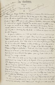 Valiquette), met en scène une jeune Canadienne française de l'Est qui, après avoir suivi son mari dans le Nord canadien, y éprouve une irrépressible nostalgie du territoire natal... Maurice Genevoix a dit avoir été « séduit et retenu » par le Canada, qu'il avait sillonné d'avril à juin 1939 : « il me proposait des thèmes qui s'harmonisaient comme d'eux-mêmes à mon univers intérieur ». Et il écrira, au sujet de ce roman : « J'ai réellement rencontré à Yoho, dans l'immense et noire baraque hôtel de la Y.M.C.A., une petite serveuse triste, Canadienne française perdue parmi les “Anglâs”. Elle n'est pas Eva Charlebois. Ce roman “canadien” c'est un autre Rémi des Rauches, mais où le thème de la nostalgie prend le pas sur celui de la fidélité ». Le manuscrit est soigneusement mis au net sur beau papier vergé d'Arches, et rédigé à l'encre bleue d'une petite écriture serrée qui occupe toute la page. Il est signé et daté en fin « 5 avril 1 942 », et dédicacé en tête : « à M. Gabriel Jutteau, mon voisin des bords de Loire, en bien cordial hommage et en sympathie pour l'excellent bibliophile ».