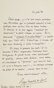 Roger Martin Du Gard (1881-1958). 12 L.A.S., 1924-1947, à un ami architecte ; 21 pages formats divers (2 au dos de 3 cartes postales illustrées et 2 cartes de visite). correspondAnce Au sujet de lA rénovAtion de son châteAu du tertre à bellême...