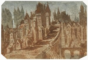George Sand. aquarelle originale ; 8,6 x 12,8 cm (encadrée). Château fantastique. « Ce château-ville, dans le “goût fantastique” de Piranèse, rejoint le thème graphique favori de deux autres écrivains du XIXe siècle : Victor Hugo et...