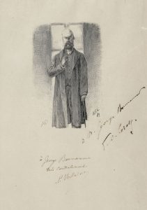 habit et redingote, debout et s'appuyant sur sa canne, main droite tenant sa pipe, coiffé d'un bonnet de nuit. Cazals fit plusieurs portraits de son ami en juillet 1889, alors qu'il était soigné à l'hôpital Broussais. précieuse épreuve, gravée sur bois par Maurice bAud (1866-1915) d'après Cazals (signatures AF.C 89 et MB) ; tirage en grand format sur papier Japon du bois placé en frontispice de l'édition originale de Dédicaces, publiée à la Bibliothèque arttistique et littéraire en décembre 1 890. double dédicAce à George bonnAmour (1 8661 954), littérateur, collaborateur de La Plume ; Verlaine lui a consacré un sonnet, paru dans La Plume du 1 5 octobre 1 889, et recueilli dans l'édition originale de Dédicaces (pièce V, numérotée XX dans la 2e édition) : « J'étais malade de regrets, de quels regrets ! / [.] Puis il fallut manger et boire. Comment faire ? / Mais vous vous trouviez là qui me tendiez mon verre ». Cazals a inscrit sa dédicace à droite du portrait : « à M. George Bonnamour F.A. Cazals ». Sous le portrait, Verlaine a inscrit : « à George Bonnanour / très cordialement / P. Verlaine ».