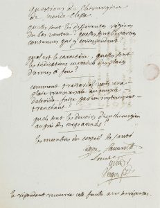 de présentation du citoyen Joseph Philippe joudAreAu, officier de santé chirurgien de 2e classe,employé depuis juin 1793, ayant « fourni les preuves de civisme et de capacité exigées par la loi ». Ont signé bAyen, hégo, vergez, simon, pelletier, bertholet et biron, secrétaire... - « Questions de chirurgien de seconde classe », portant sur les régions du basventre, les plaies d'armes à feu, le traitement de plaies faites par un instrument tranchant, et les devoirs du chirurgien auprès des armées. Ont signé bAyen, lorente, sAucerotte, théry et vergez.