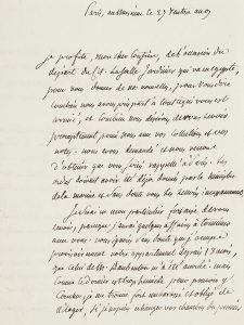 adresse. très belle lettre à son confrère geoffroy sAint-hilAire pendAnt l'expédition d'égypte. Il profite du départ de lAsAlle, jardinier qui va en Égypte, pour dire combien ils ont pris part à tout ce qui est arrivé à leur confrère, « et combien nous désirons de vous revoir promptement parmi nous avec vos collections et vos notes. Nous avons demandé et nous venons d'obtenir que vous soiés rappellé à Paris. Les ordres doivent avoir été déjà donnés par le ministre de la marine »... Depuis 18 mois, il occupe son appartement, puisque celui de Daubenton est trop humide pour y coucher, mais ils espèrent pouvoir instamment lui proposer mieux. « Vous serait-il possible [...] de m'apporter quelques bouteilles de l'eau du Lac de Natron, et quelques autres produits chimiques naturels ou artificiels de l'Egypte. Vous savés quel intérêt j'attache à des recherches sur des objets de cette nature. Le natrium, les bitumes, les pierres, les sucs végétaux, sont autant de productions dont l'examen peut avoir une grande importance pour l'histoire naturelle »... Des échantillons d'insectes seraient aussi les bienvenus... Ils espèrent tous son retour d'autant plus prompt « depuis l'heureuse paix ratifiée aujourd'hui et terminée entièrement avec l'empereur et l'empire »...