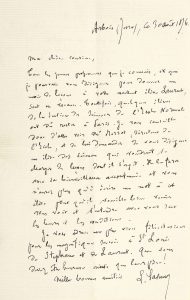 vitraux, le peintre Gaspard Gsell (1814-1904) ; parmi leurs enfants cités dans cette lettre, le peintre Laurent Gsell (1860-1944) et l'archéologue Stéphane Gsell (1864-1932)]. « Tous les jeunes professeurs que je connais, et que je pourrais vous désigner pour donner un mois de leçons à votre excellent élève Laurent, sont en vacances. Toutefois, quelques élèves de la Section des Sciences de l'École Normale ont dû rester à Paris ». Il conseille de s'adresser à son directeur M. bersot pour « désigner un élève des Sciences qui voudrait se charger des leçons dont il s'agit »... Il termine en la félicitant « pour les magnifiques succès à St Louis de Stéphane et de Laurent. Que vous devez être heureuse ainsi que leur père ! »...