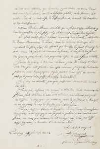 duplicAtA de l'Ancien commAndAnt du district de yAnAon, prisonnier des AnglAis depuis 1793. 28 vendémiaire XII (21 octobre 1803). Il espérait envoyer en France « des arbres précieux ainsi que quantité de graines que je m'étois procuré par le moyen du docteur Anderson de Madras et du docteur Klein de Tranquebar, mais la nouvelle guerre survenue m'a mis hors d'état de pouvoir vous les adresser »... Il a découvert avec chagrin que dans sa caisse d'animaux et d'oiseaux, « tout etoit mangé par les mittes et qu'il ne restoit que la peau sans plumes aux oiseaux. Je n'ai plus que mes coquillages, mes herbiers, mes pierres et minéraux et quelques boëtes d'insectes et papillons. J'ai conservé aussi deux grands flacons de couleuvres pour Mr de lAcepède »... 15 février 1804. Seuls partiront sur les vaisseaux de la Compagnie « les officiers compris dans la capitulation de 1803 faite par le général Binot »... 24 février 1804. Il lui fait parvenir un paquet de graines de stramonium, et espère que l'Institut pense à lui, dans sa « nouvelle formation »... on joint un mAnuscrit autographe signé, Observations sur le Stramonium violet, 29 pluviose XII (19 février 1804) : communication à l'Institut national, sur cette espèce de plante ou Datura Lotro, dont il relève les « excellentes qualités pour l'asme », éprouvées en Inde par MM. Boileau, Brenier et Violette.